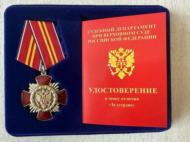 30 апреля 2025 г. на торжественном собрании судей и работников аппарата Ленинского районного суда г. Владивостока за значительный личный вклад в развитие судебной системы, всестороннее содействие в укреплении и совершенствовании правосудия в Российской Федерации председатель суда Юлбарисова С.А. вручила заместителю начальника отдела делопроизводства суда Максименко А.В. знак отличия Судебного департамента при Верховном Суде Российской Федерации «За усердие» II степени.